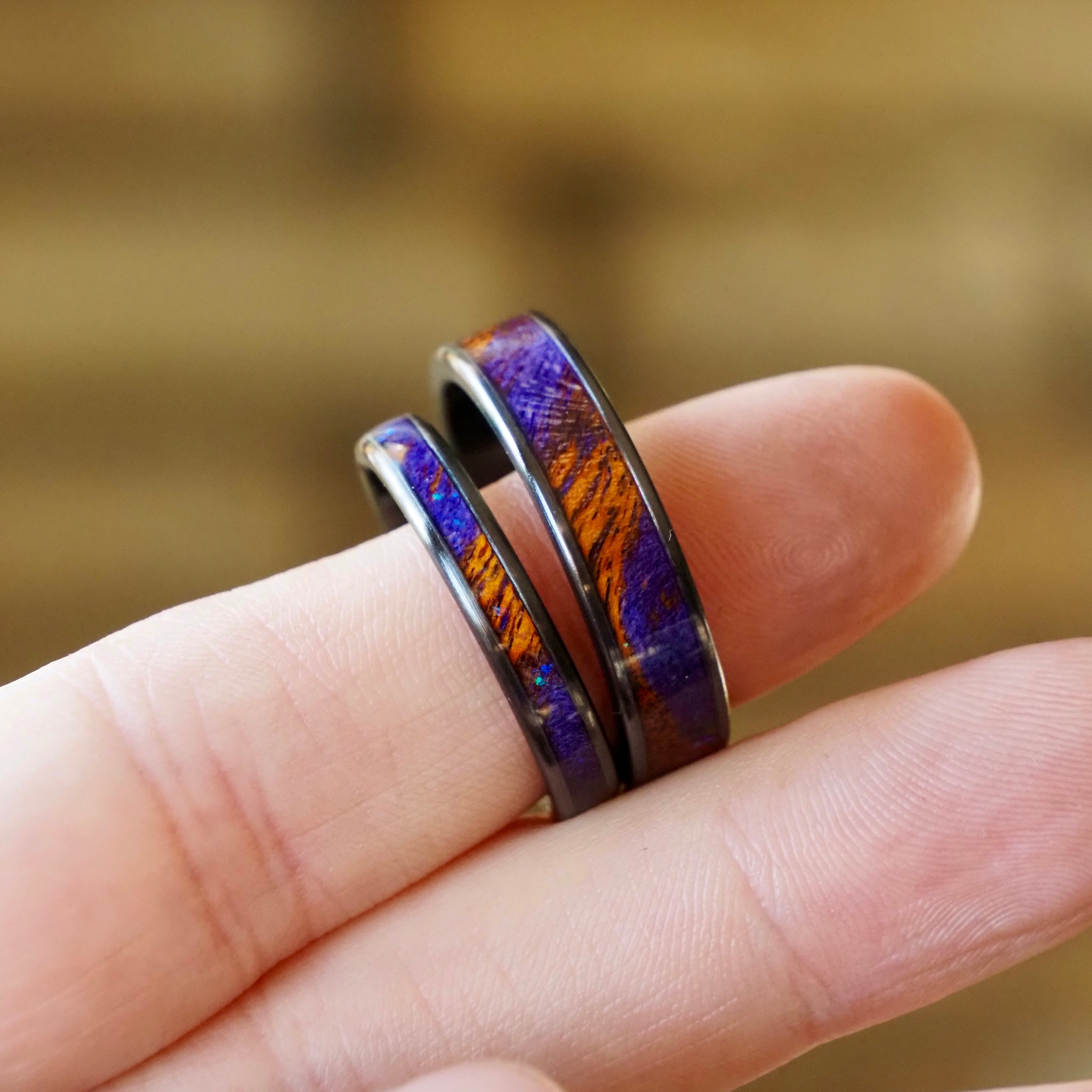 Tungsten Carbide is often called the "forever metal", which is why it's an excellent choice to reinforce any wood. This remarkable material combines tungsten, one of the hardest metals known to man, with carbon to create an incredibly durable and scratch-resistant alloy. Tungsten is relatively heavy (especially the 8mm design) but it makes sure your wood inlay ring will withstand the test of time, maintaining its pristine look even with daily wear. It also a great choice if you'd like a more metal-dominant and elegant design for your ring.