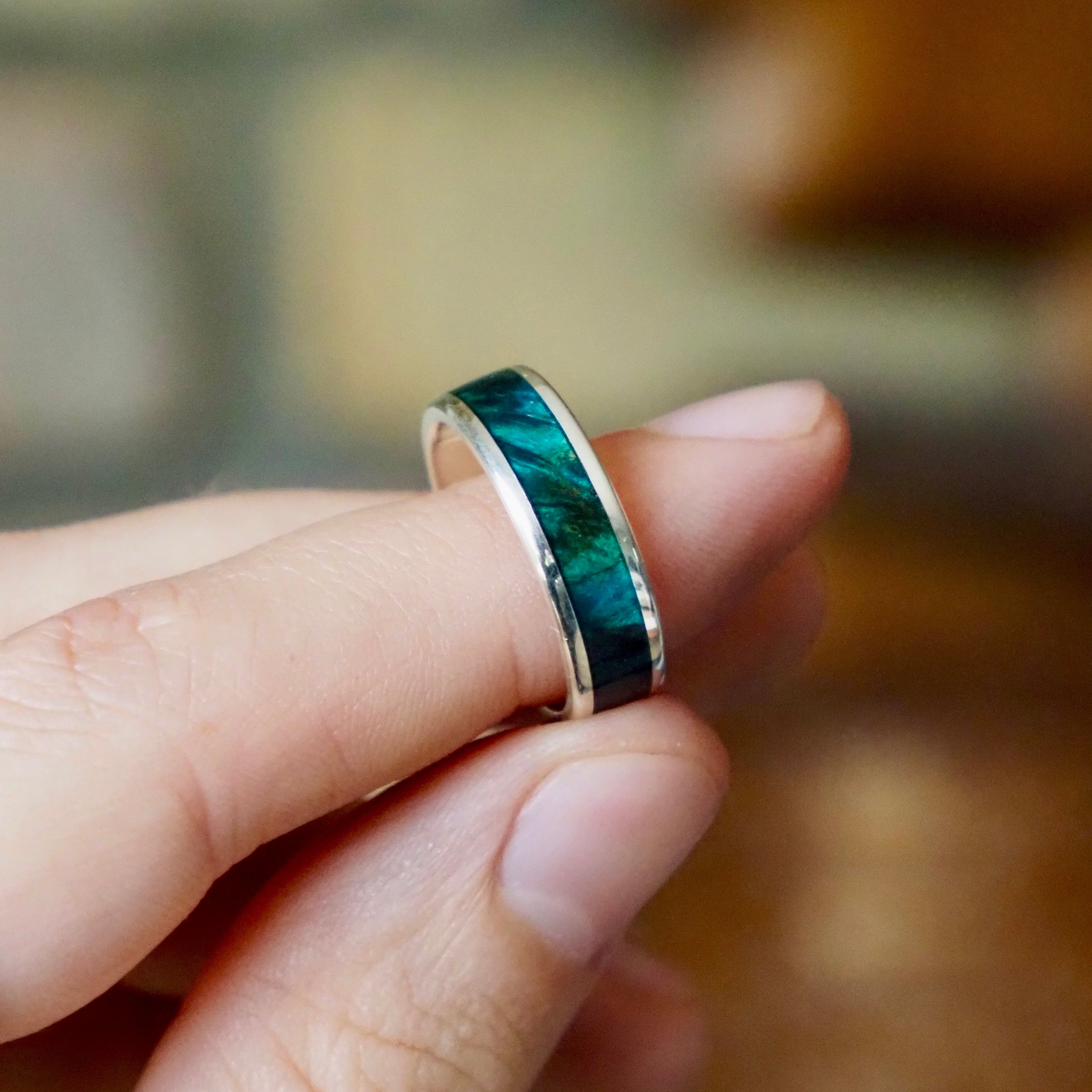 Silver 925, commonly known as sterling silver, is a classic and elegant choice for the reinforcement of a wood inlay ring. Silver, being a soft precious metal, is more prone to scratch, but its beautiful bright tone, light weight, and natural value more than makes up for it.