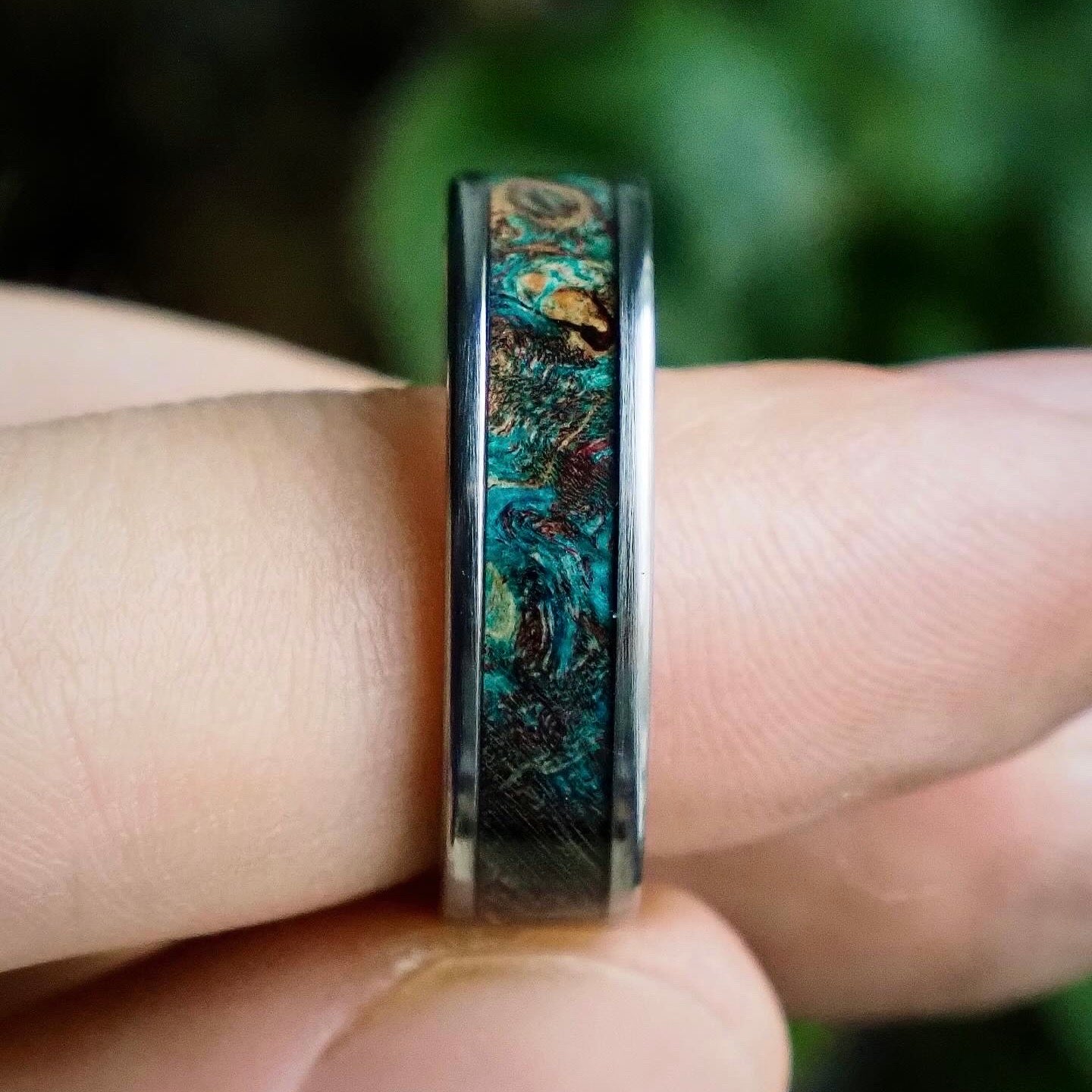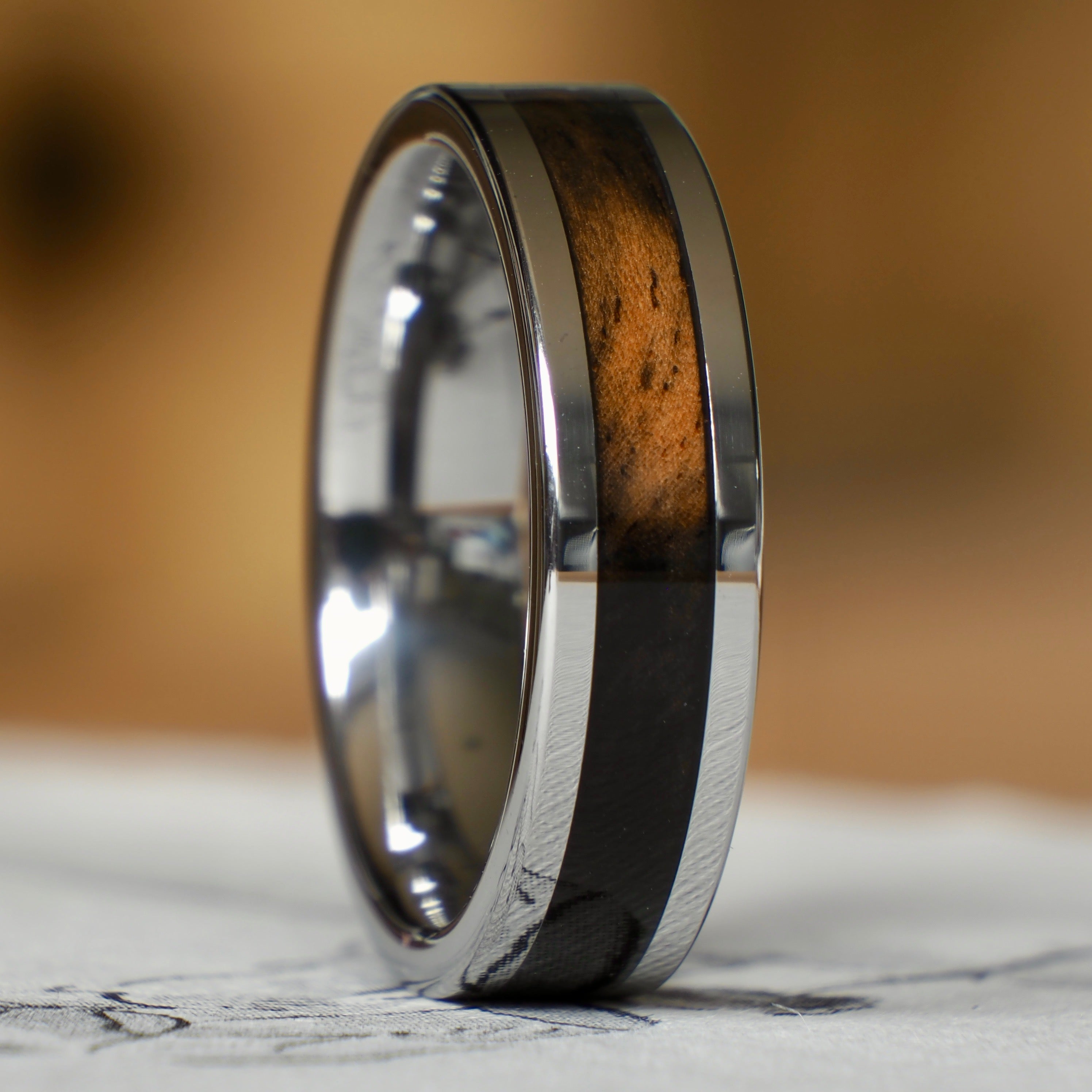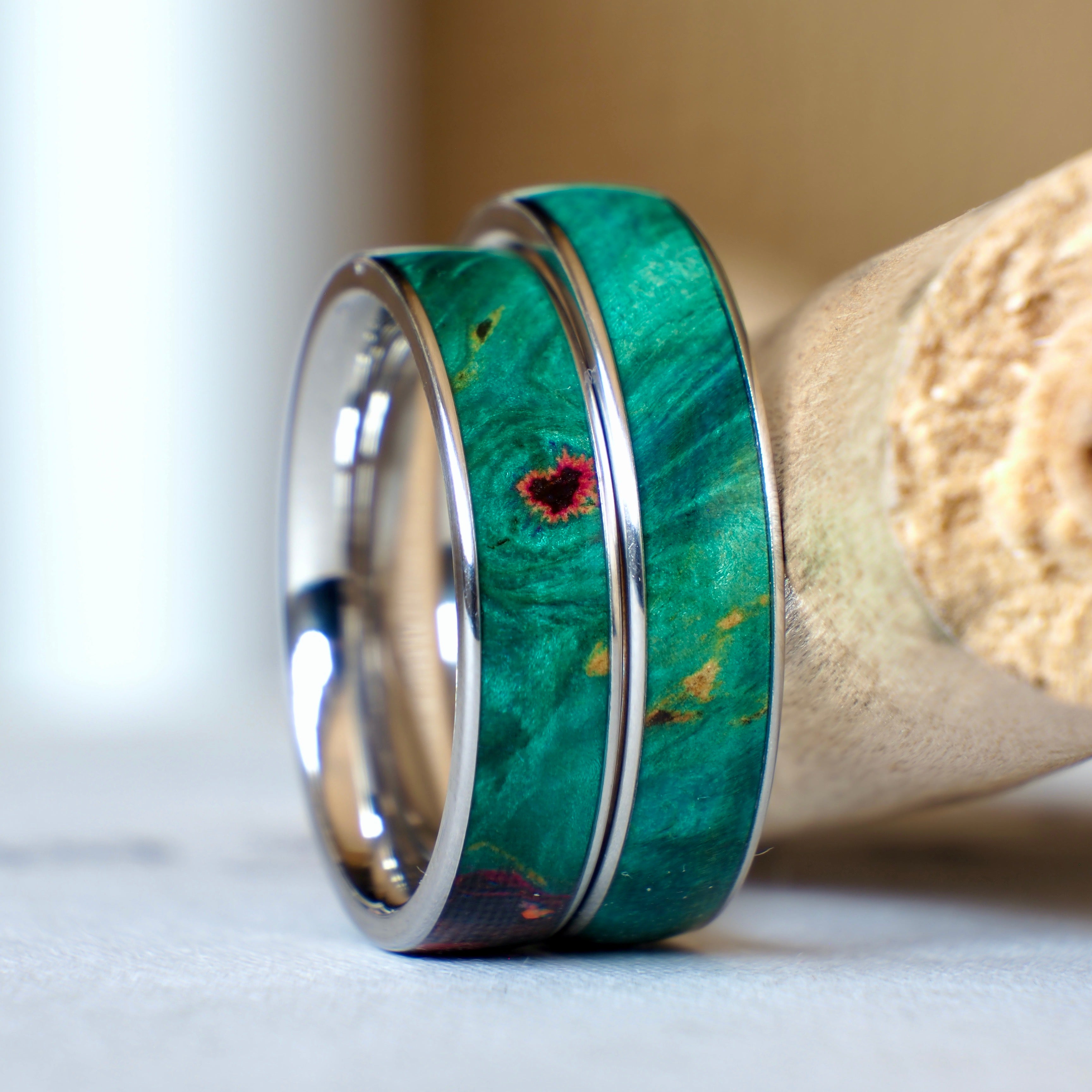 Mother Nature is the real artist of these rings. The purpose of the rings themselves is to protect and highlight the unique and lesser known beauty of wood. From the classic oak to a stabilized and colored buckeye, all these rings have solid, natural wood as an inlay.