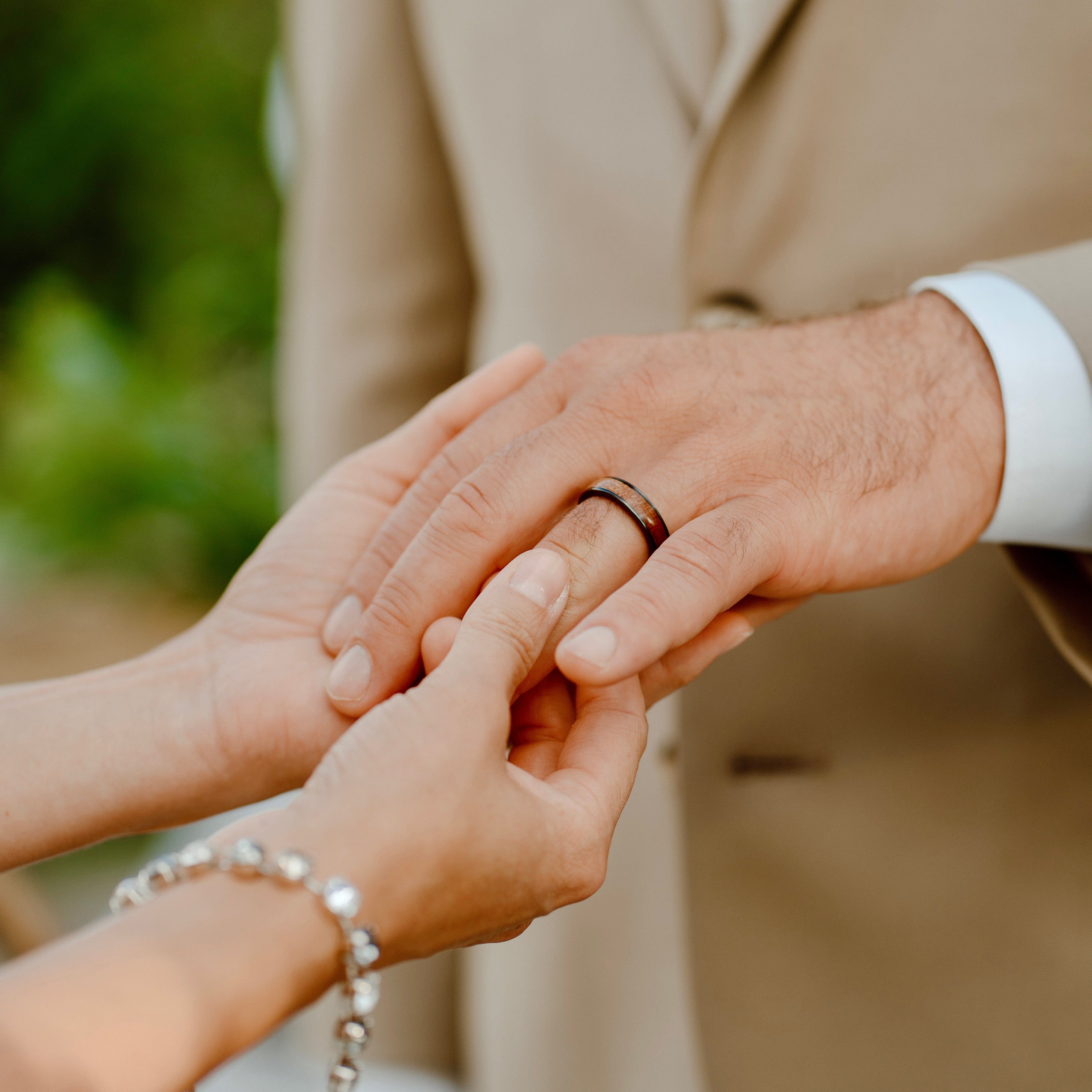"Onze prachtige trouwringen worden gemaakt door Woodfox Rings. Elk stuk heeft een ziel en een unieke schoonheid 🥰 Als je houdt van speciale, natuurlijke sieraden, dan maken ze hier wat je van droomt."