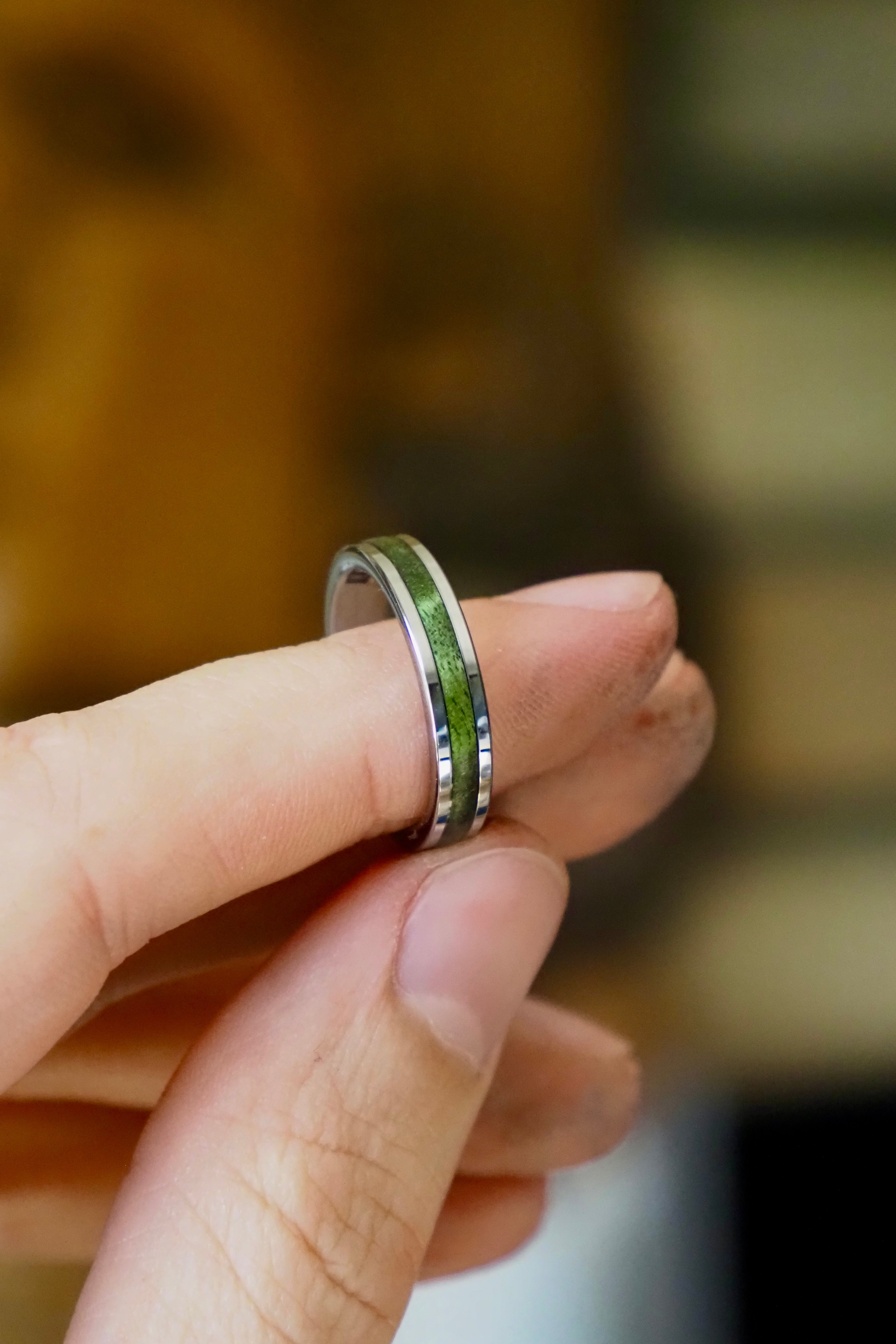 Surgical Stainless Steel offers a minimalist look with a clever design twist. Its ultra-thin walls were intentionally crafted to keep the metal profile low — since it's not scratch-resistant, there's barely enough surface to notice wear. The result is a lightweight, comfortable, and hypoallergenic ring core that keeps the focus on the wood, not the shine. Available in 4mm, 6mm, and 8mm widths, it’s perfect for those who want subtle strength without the bulk.